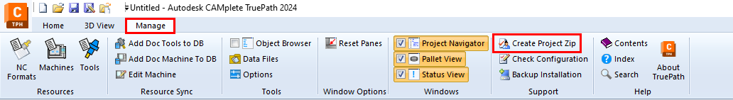 - Click on Create Project Zip from the Manage tab.